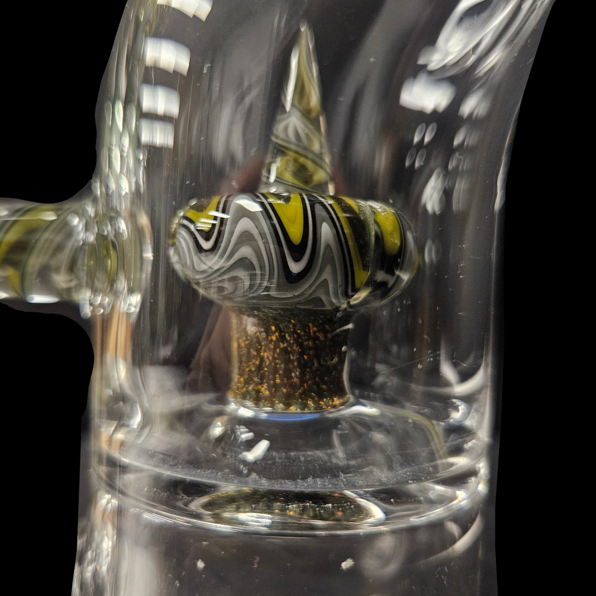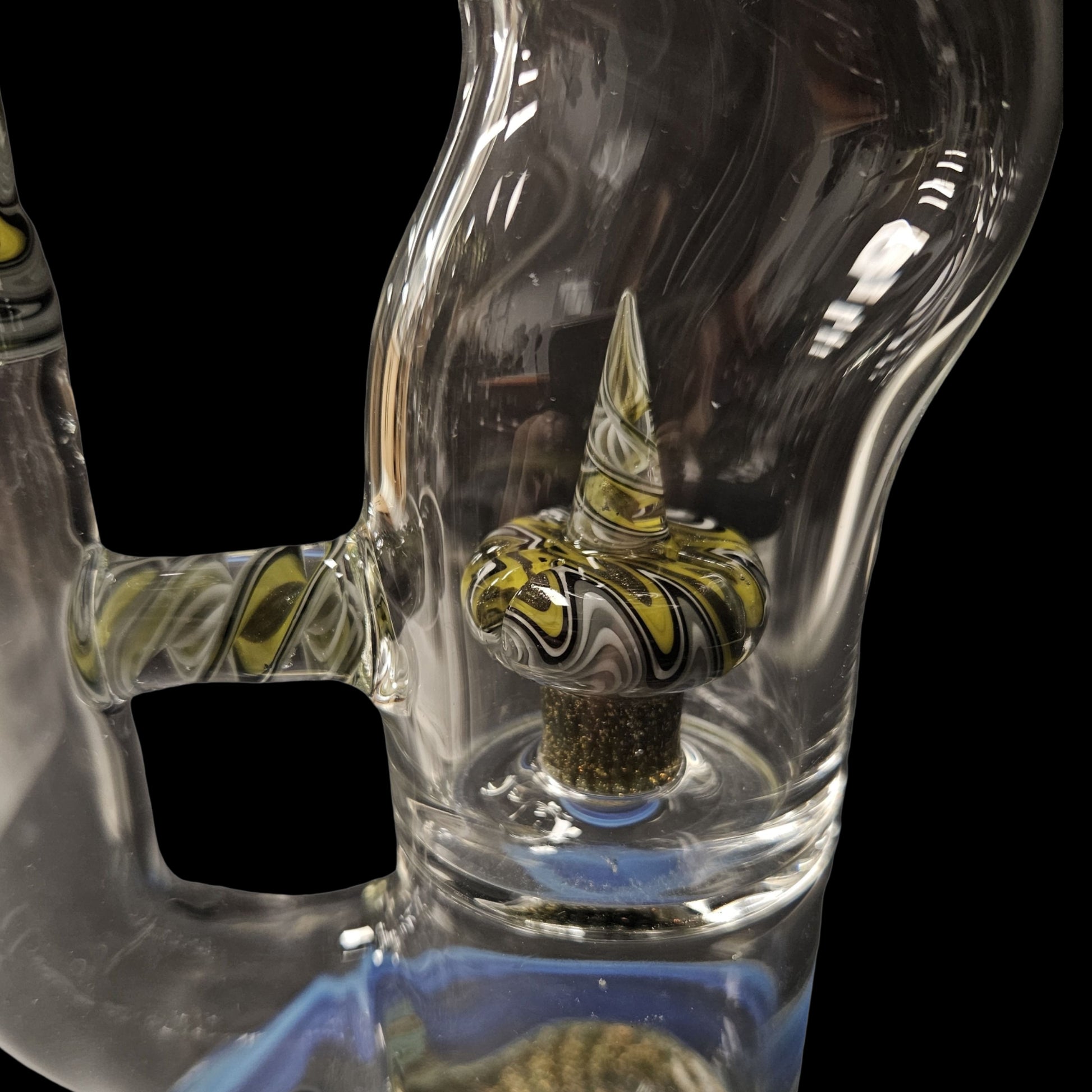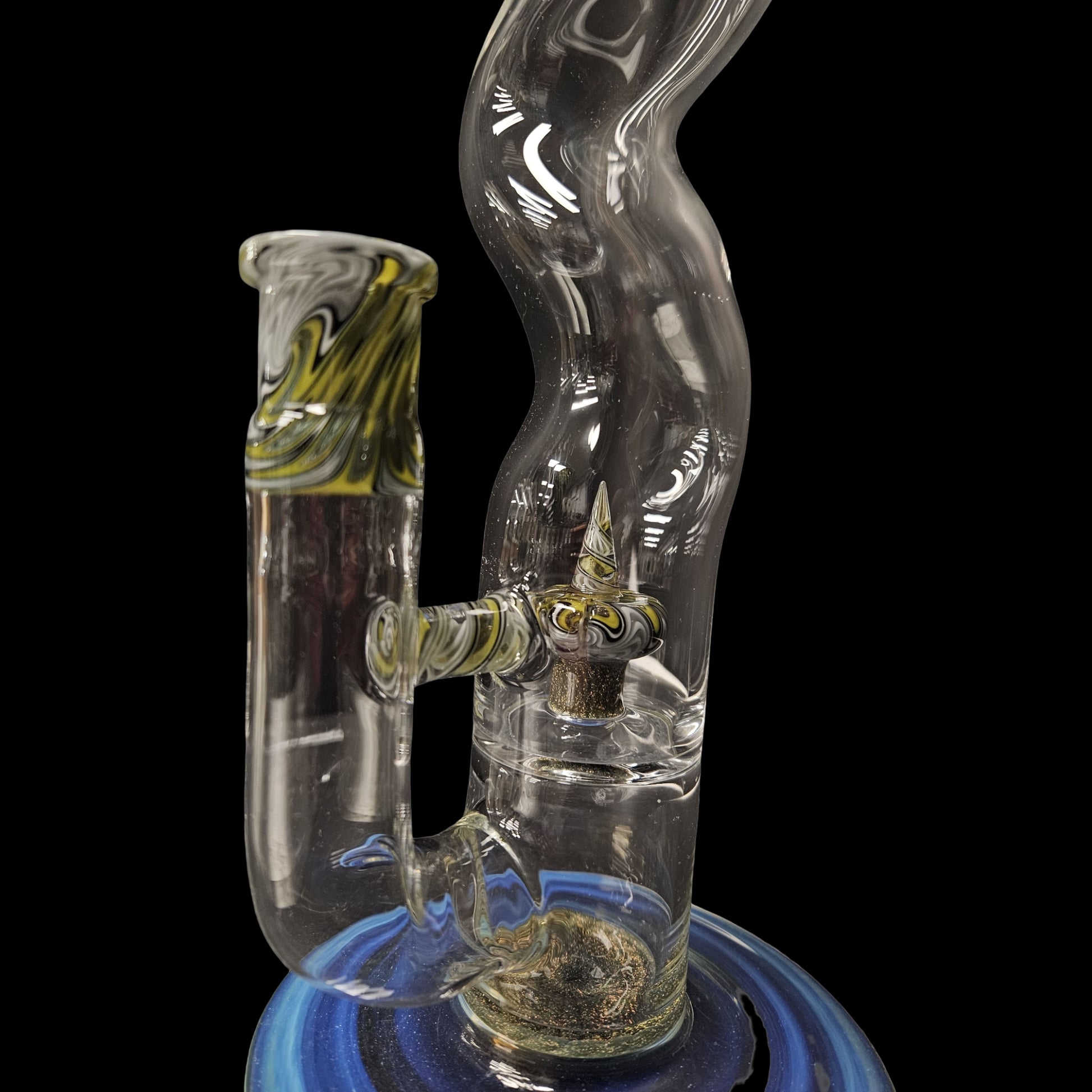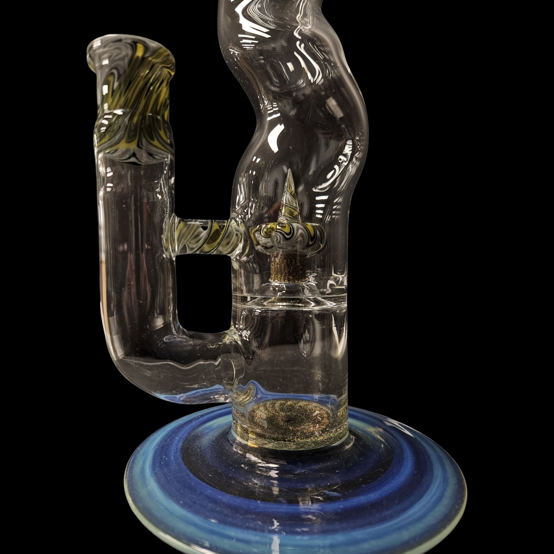 This tube is made of of jack pot of sunshine tubing and Colorado color company tubing. The contrast of the orange over green sparkly jackpot really makes it pop. The section in the base viewed through water makes it seem as though its almost floating.