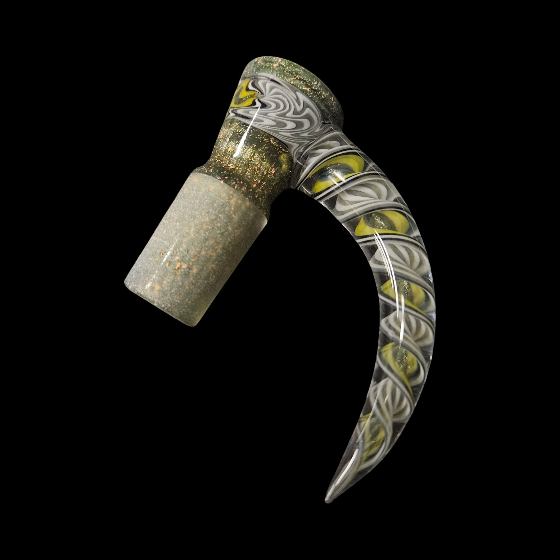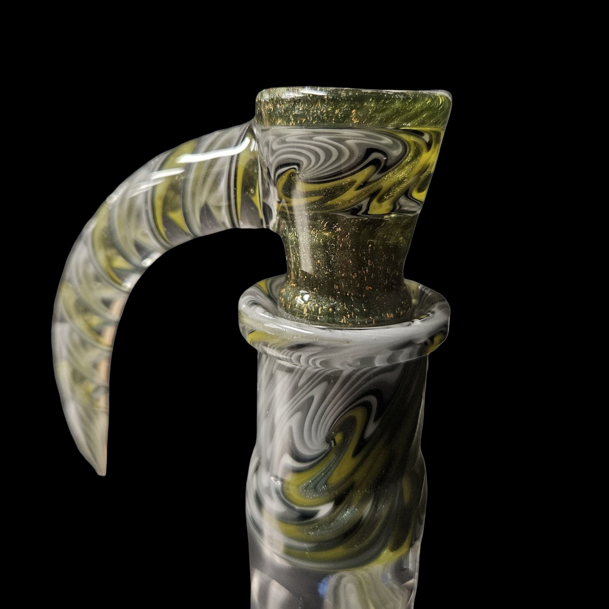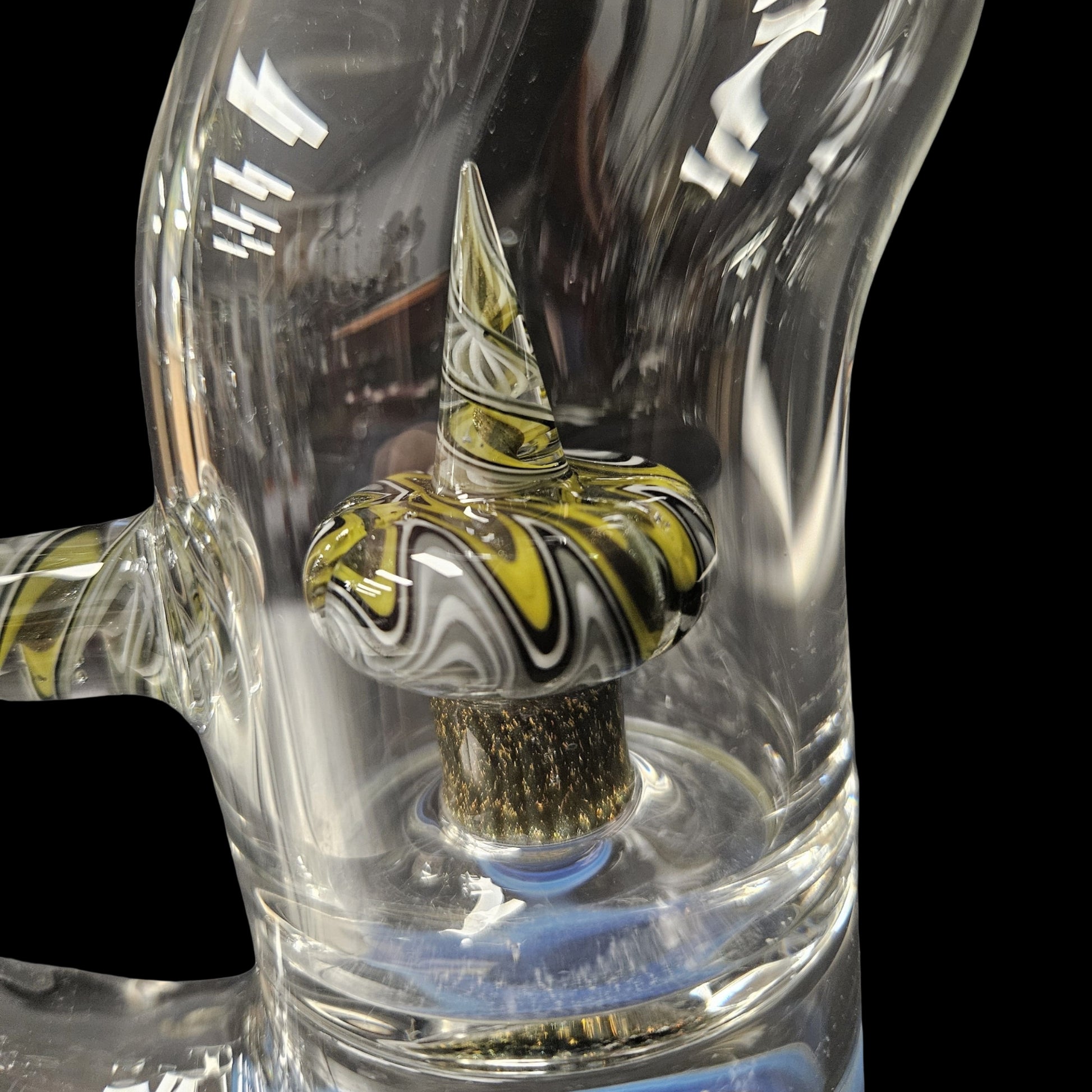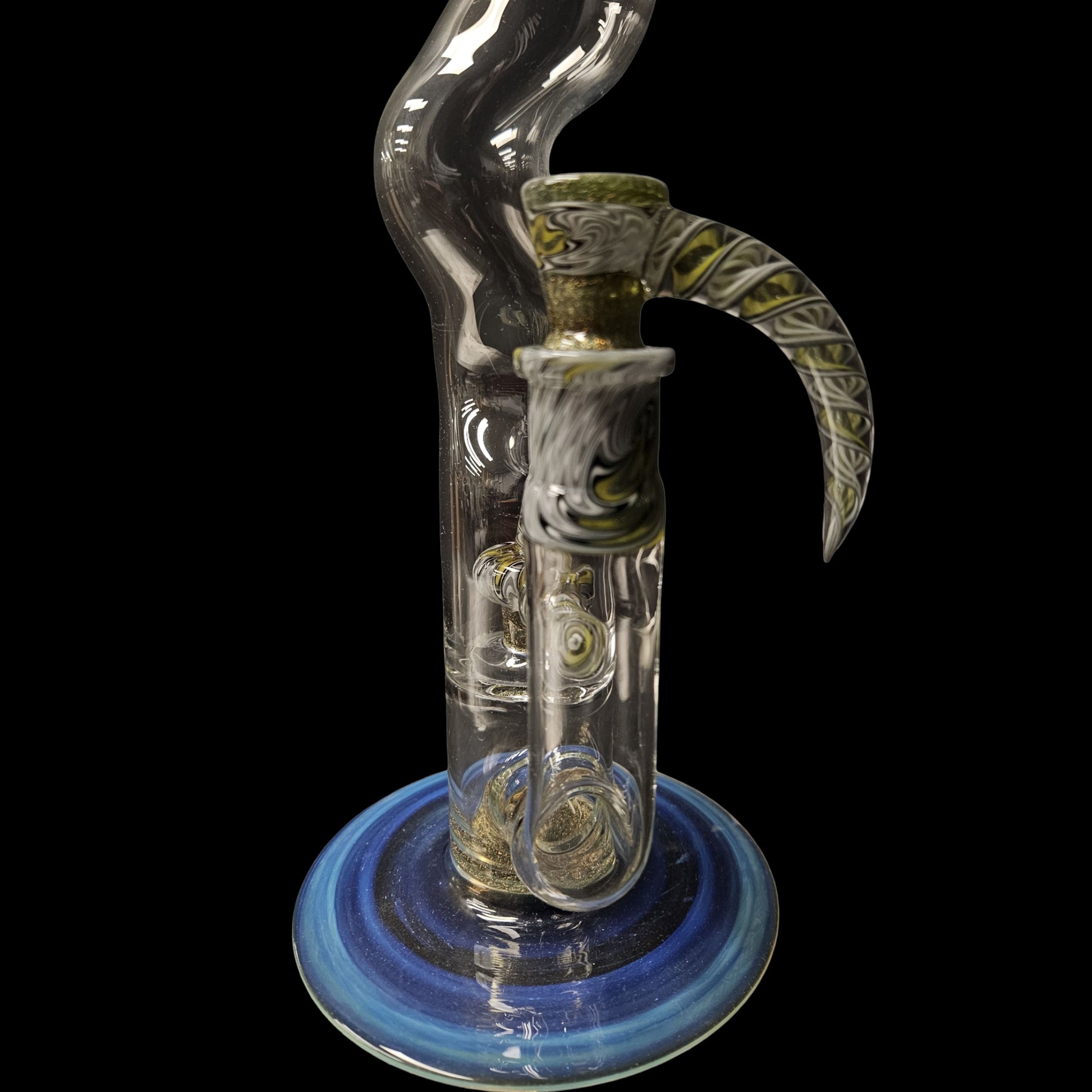 This tube is made of of jack pot of sunshine tubing and Colorado color company tubing. The contrast of the orange over green sparkly jackpot really makes it pop. The section in the base viewed through water makes it seem as though its almost floating.